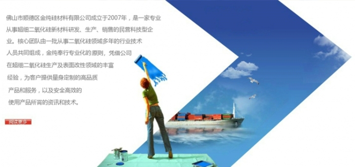 佛山市顺德区金纯硅材料有限公司成立于2007年,是一家从事超细二氧化硅研发、生产、销售的民营新材料企业。公司拥有一批从事二氧化硅领域多年的技术人员,凭借在超细二氧化硅生产及表面改性等领域的丰富经验,为客户提供量身定制的高品质产品和服务,以及使用产品过程中所需的资讯和技术。